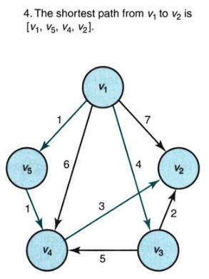Step 4 $v_1$으로부터 {$v_3$, $v_4$, $v_5$}를 통해서 갈 수 있는 다음의 가장 가까운 정점은 $v_2$이다.
