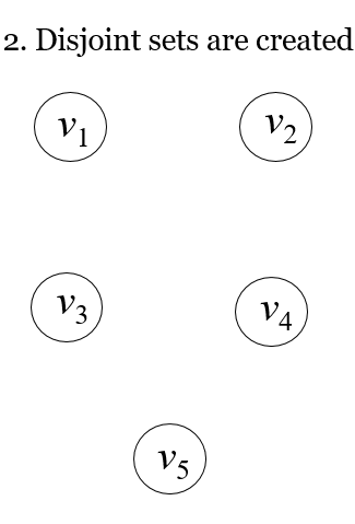 Step 2 5๊ฐ์ ์ ์ ๋ค์ด ์์ผ๋ฏ๋ก ์ด 5๊ฐ์ ์๋ก์ ์งํฉ, ์ฆ {$v_1$}, {$v_2$}, {$v_3$}, {$v_4$}, {$v_5$}์ด ๋ง๋ค์ด์ง๊ฒ ๋๋ค.