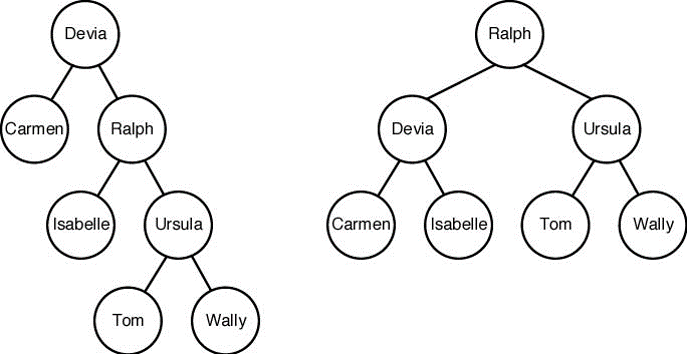 - The keys in the left subtree of a given node are less than or equal to the key in that tree.