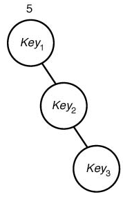 Example Shows the five different trees when n = 3. The actual values of the keys are not important. The only requirement is that they be ordered. $p_i$ is the probability that $Key_i$ is the search key. If